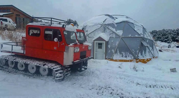 The dome shape is the best shape for handling wind and snow. It also allows for more even heat from the sun that a traditional greenhouse. What elevation are you and do you get snow?